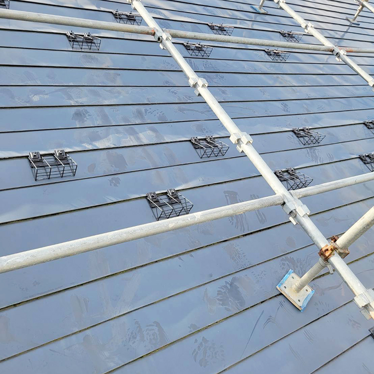 屋根からの落雪は危険です。人、車などを落雪から守る為のアイテムが雪止めです。